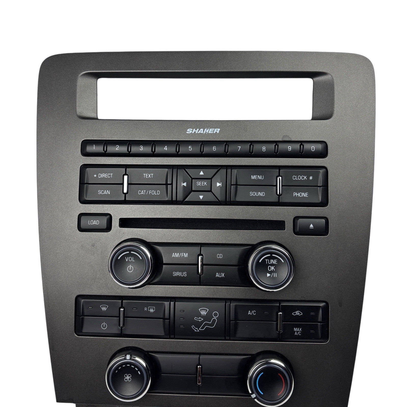 Restore your Mustang’s center stack with this genuine OEM faceplate, compatible with 2011–2014 models. This version includes blanks where heated seat buttons would be, making it ideal for base and mid-trim Mustangs without that option.