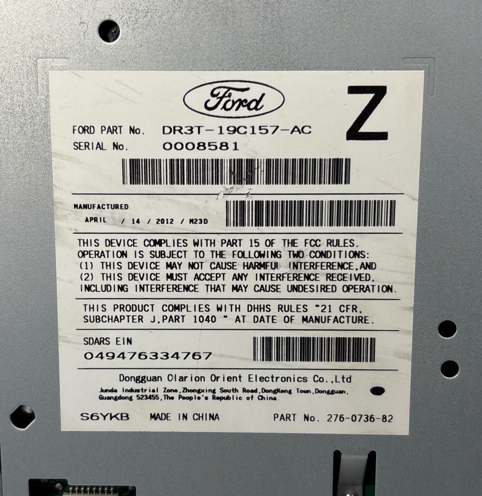 OEM Ford Mustang SHAKER CD Player Receiver – DR3T-19C157-AC – AM/FM/Satellite